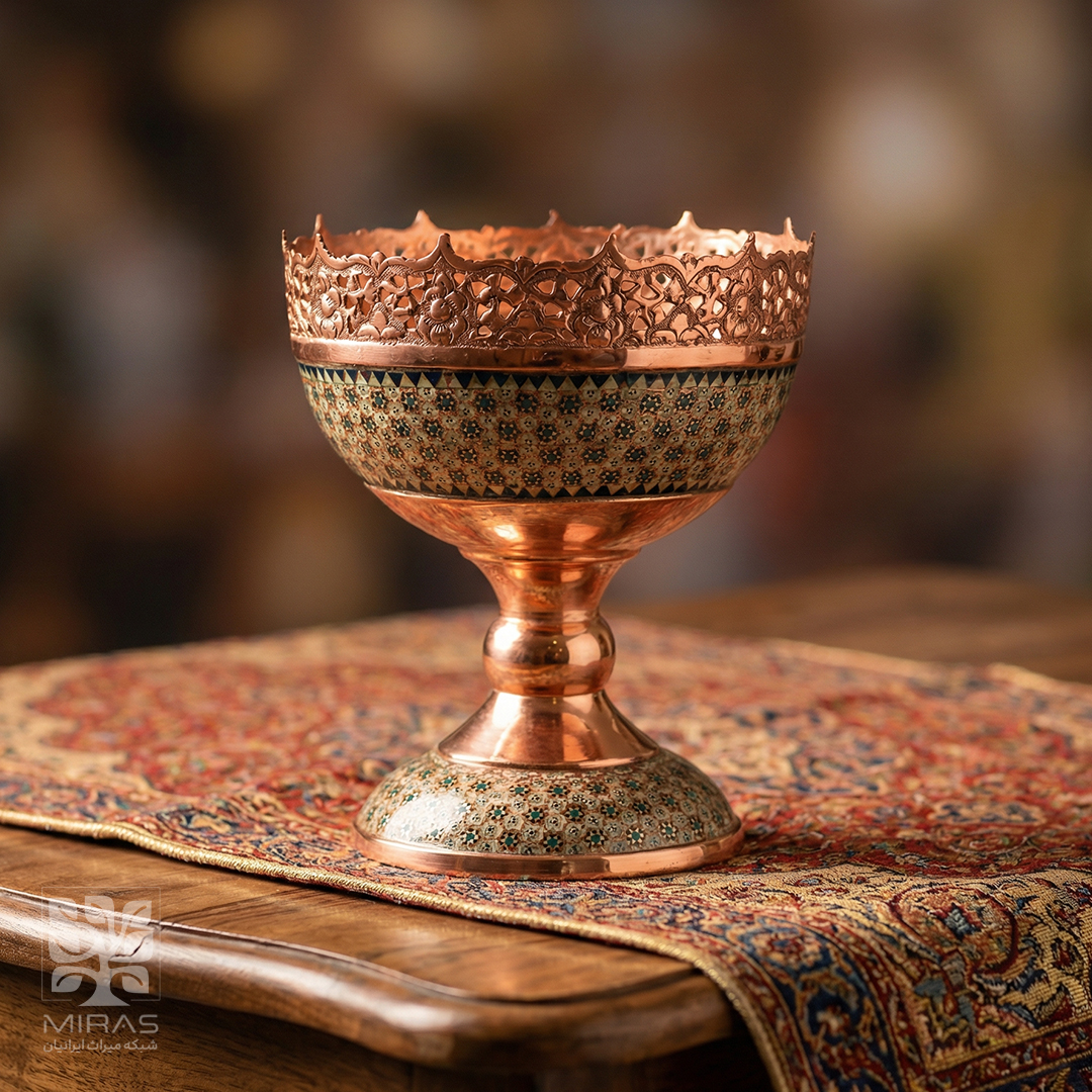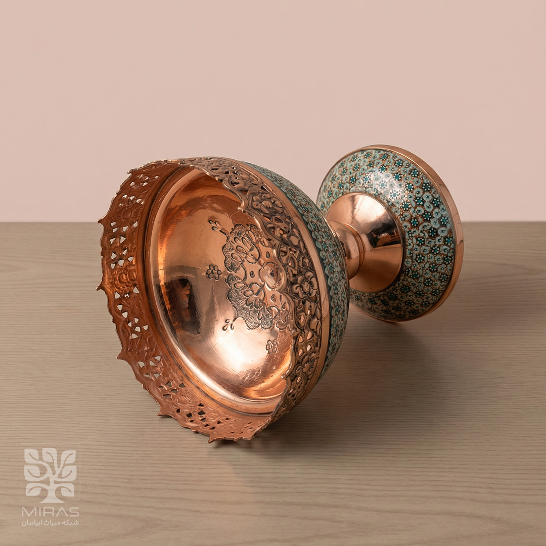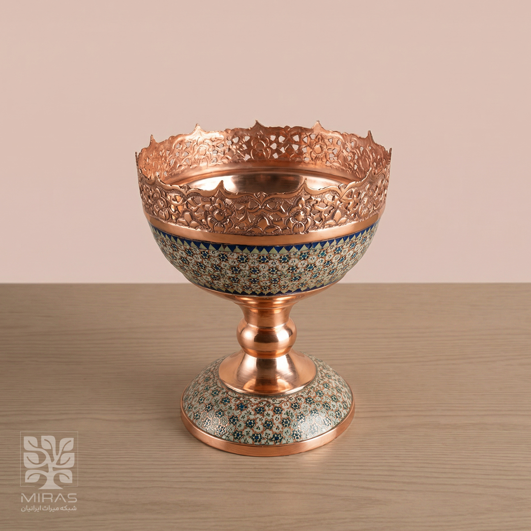 آجیلخوری میناکاری پایهدار سایز ۱۳ با ساخت دقیق و متریال مرغوب، انتخابی شایسته برای پذیرایی رسمی و دکوراسیون لوکس ایرانی.
