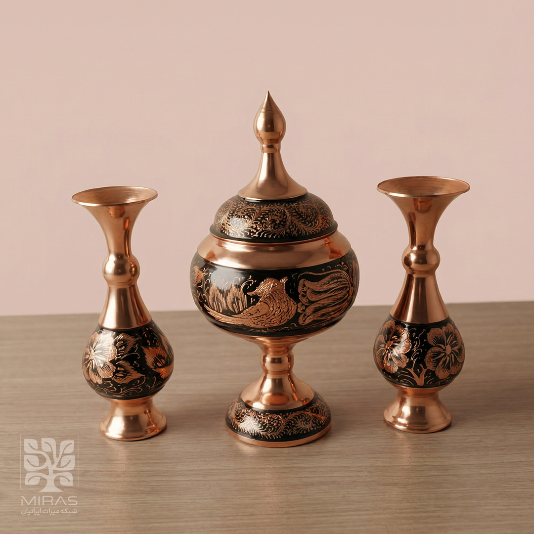 دو عدد گلدان صراحی سایز 16 به همراه یک عدد شکلات خوری سایز پرداز اعلا22 با ساخت دقیق و متریال مرغوب، انتخابی ایدهآل برای پذیرایی رسمی و دکوراسیون لوکس.