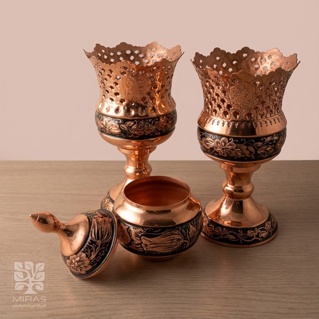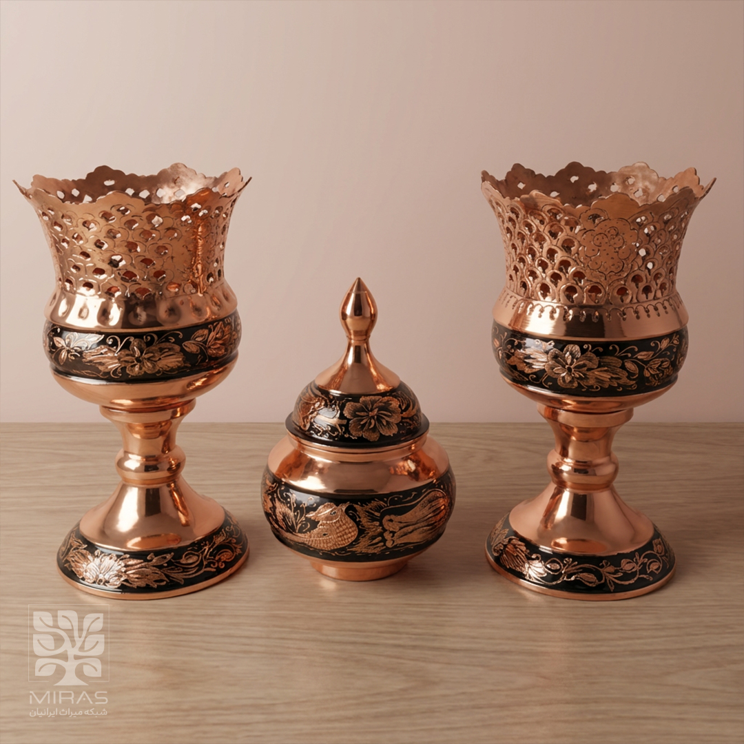 دو عدد گلدان صراحی سایز 16 به همراه یک عدد شکلات خوری سایز پرداز اعلا22 با ساخت دقیق و متریال مرغوب، انتخابی ایدهآل برای پذیرایی رسمی و دکوراسیون لوکس.