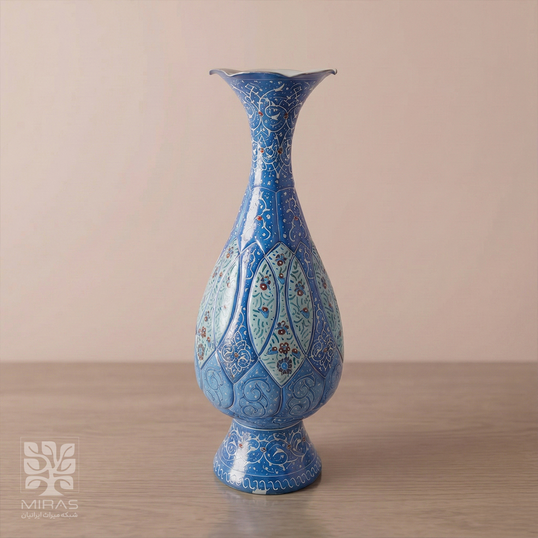 گلدان تک میناکاری سایز ۲۰ با ساخت دقیق و متریال مرغوب، گزینهای شایسته برای دکوراسیون لوکس و پذیرایی رسمی ایرانی.