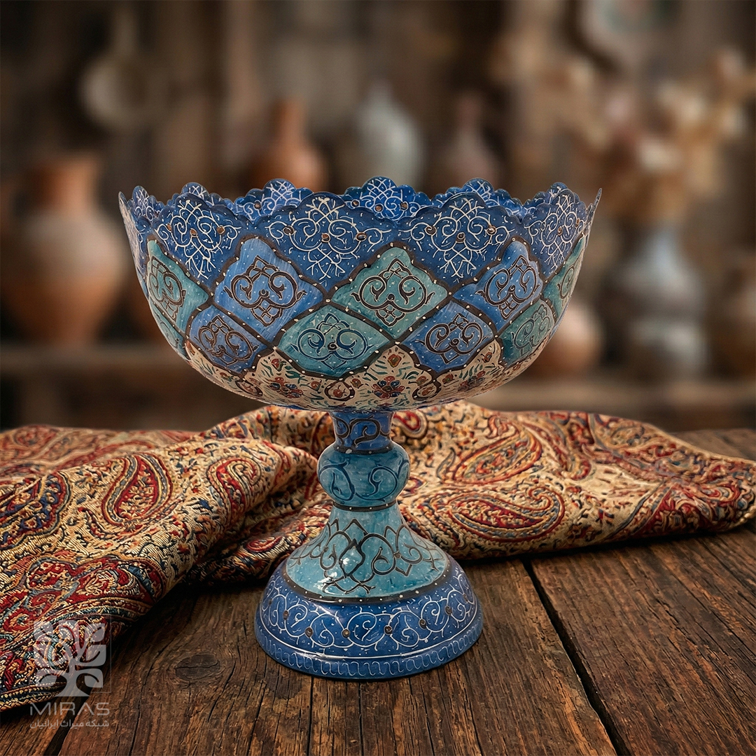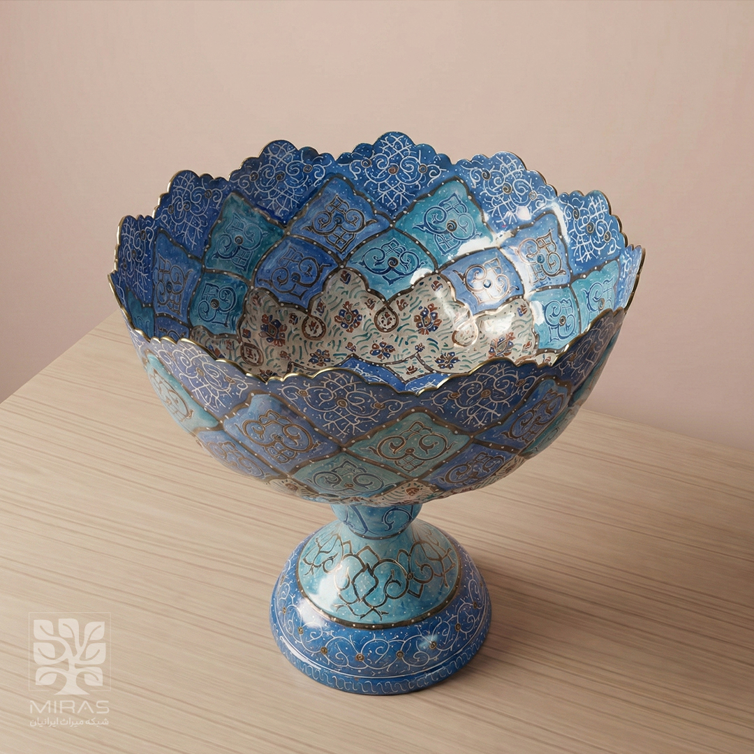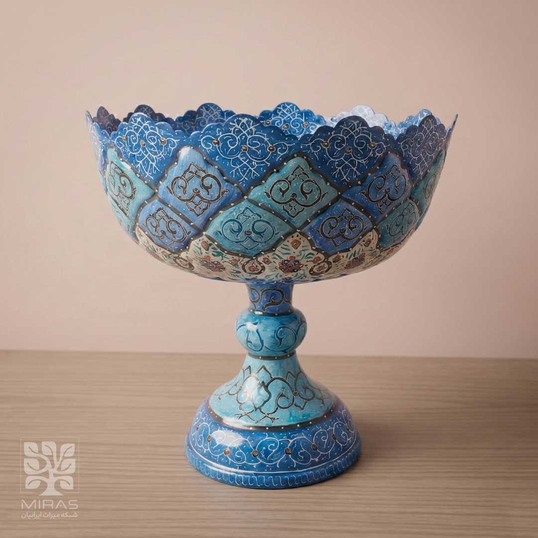 آجیلخوری میناکاری پایهدار سایز ۱۳ با ساخت دقیق و متریال مرغوب، انتخابی شایسته برای پذیرایی رسمی و دکوراسیون لوکس ایرانی.