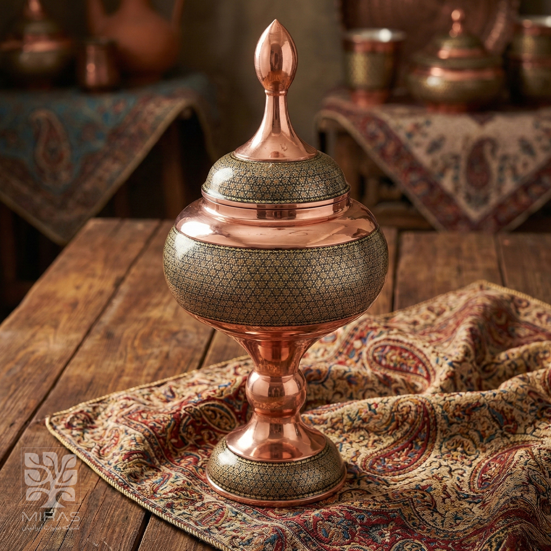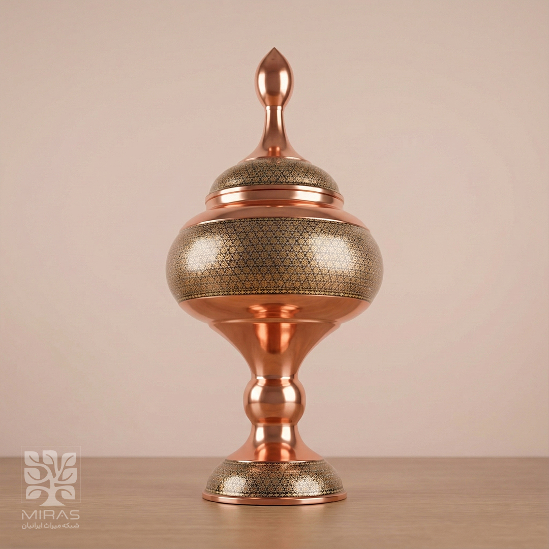 قندان خاتم کاری بسیار فاخر و شیک سایز ۲۵ با ساخت دقیق و متریال مرغوب، انتخابی شایسته برای پذیرایی رسمی و دکوراسیون شیک.