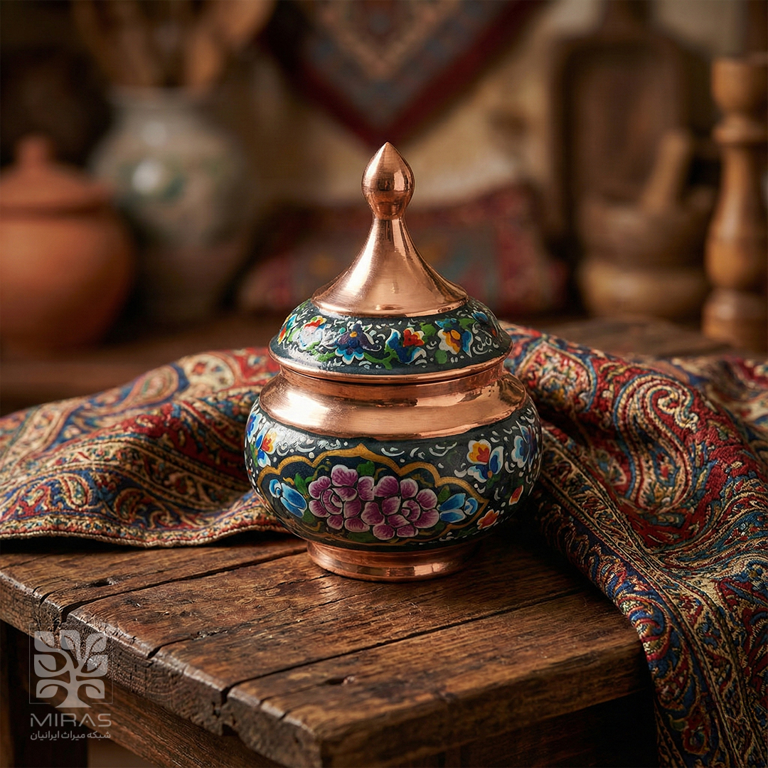 قندان ساده میناکاری سایز ۲۰ با ساخت دقیق و متریال مرغوب، انتخابی شایسته برای پذیرایی رسمی و دکوراسیون لوکس ایرانی.