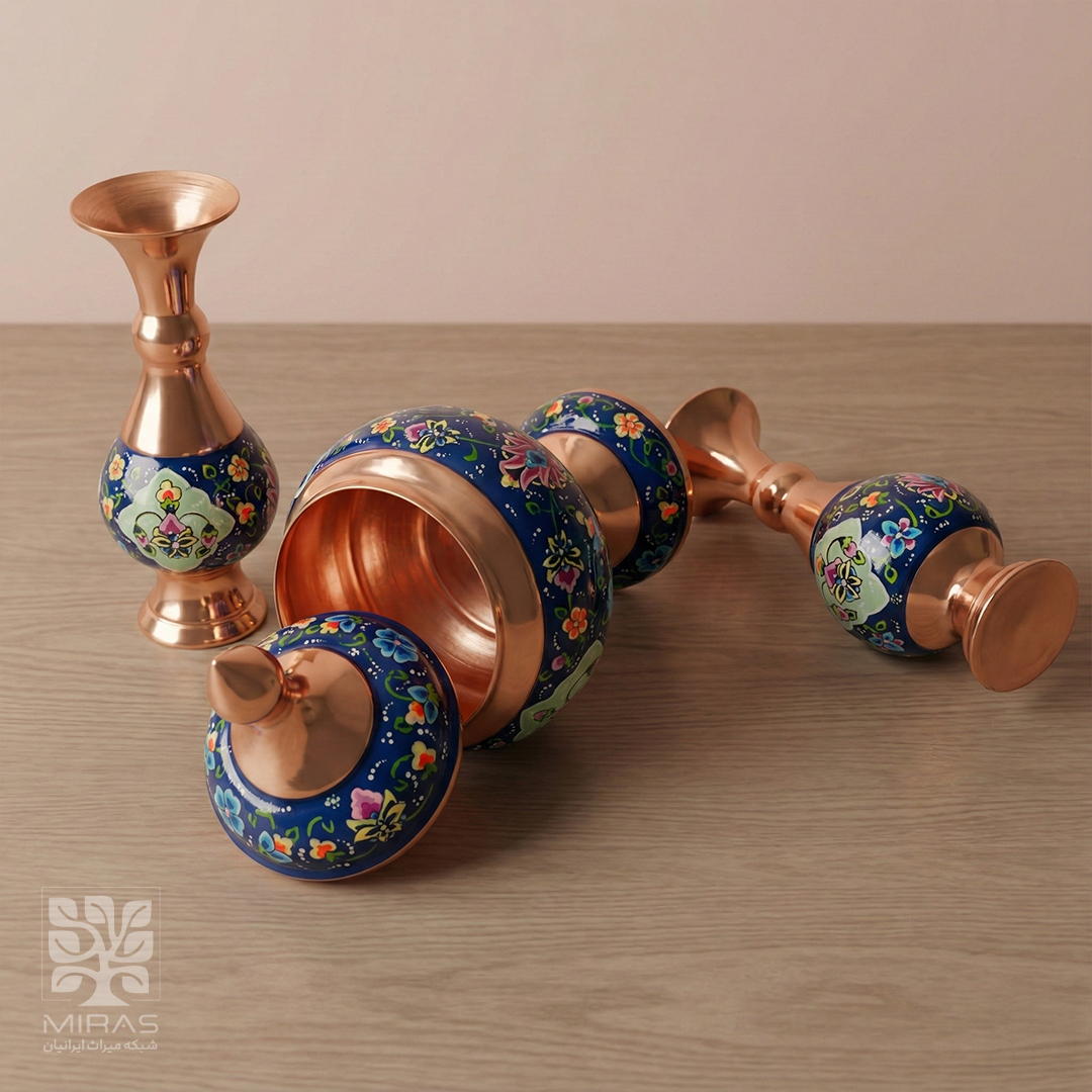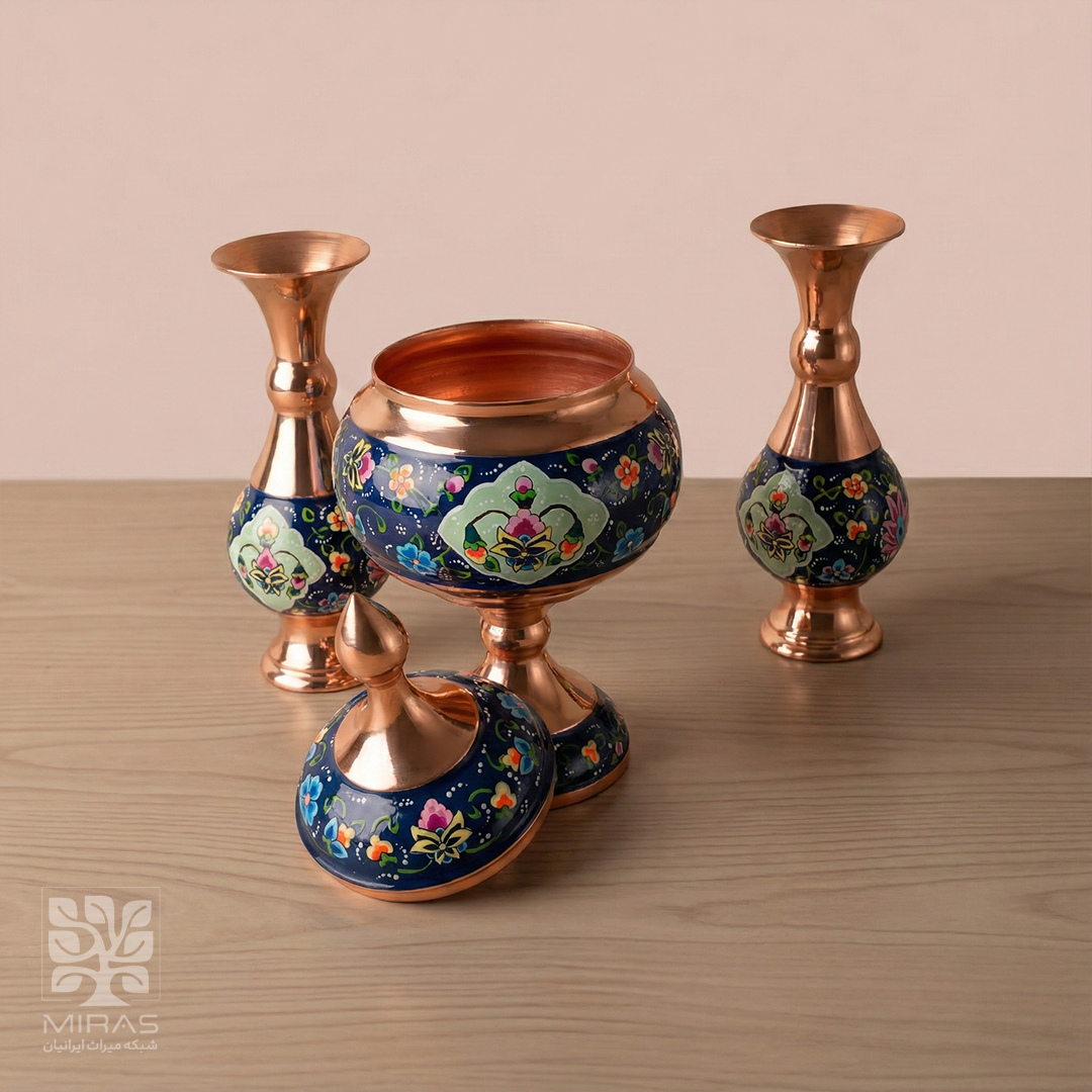 دو عدد گلاب پاش شاهی و یک عدد قندان فیروزه کاری بسیار شیک سایز 18 با ساخت دقیق و متریال مرغوب، مناسب پذیرایی رسمی و دکوراسیون اصیل ایرانی.