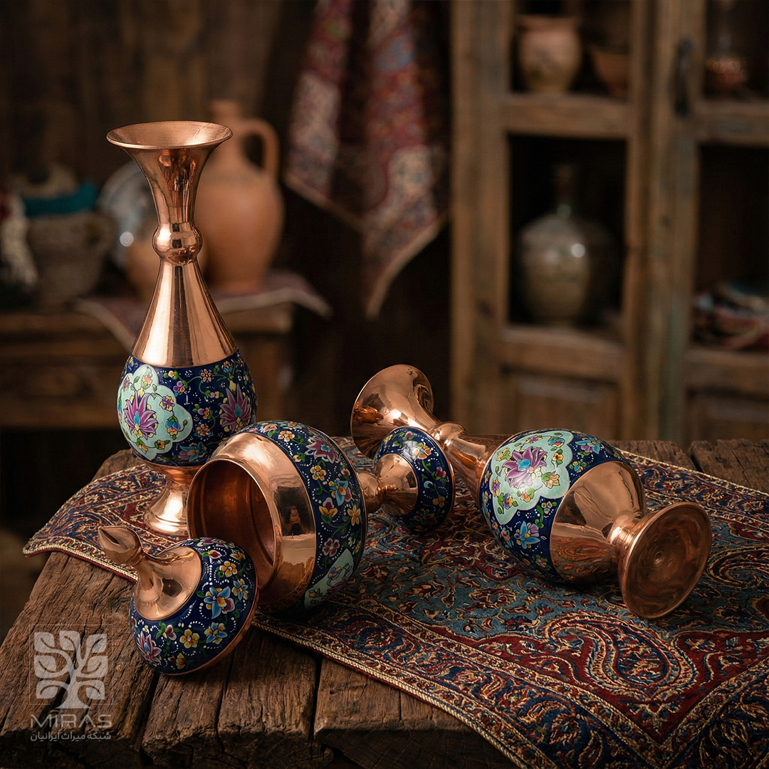 دو عدد گلاب پاش فیروزه کاری شاهی با ساخت دقیق و متریال مرغوب، گزینهای فاخر برای پذیرایی رسمی و دکوراسیون سنتی ایرانی.