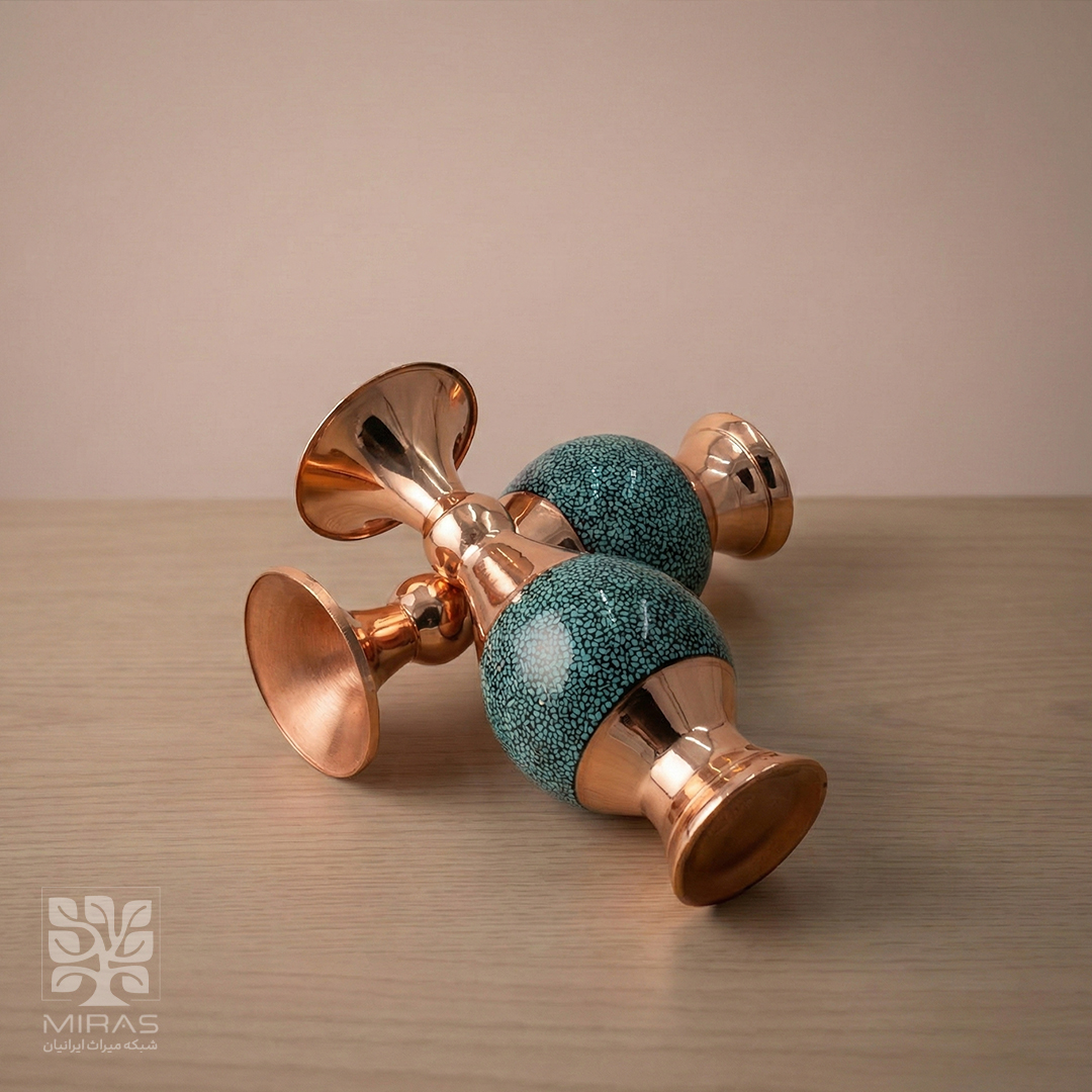 دو عدد گلاب پاش فیروزه کاری شاهی با ساخت دقیق و متریال مرغوب، گزینهای فاخر برای پذیرایی رسمی و دکوراسیون سنتی ایرانی.