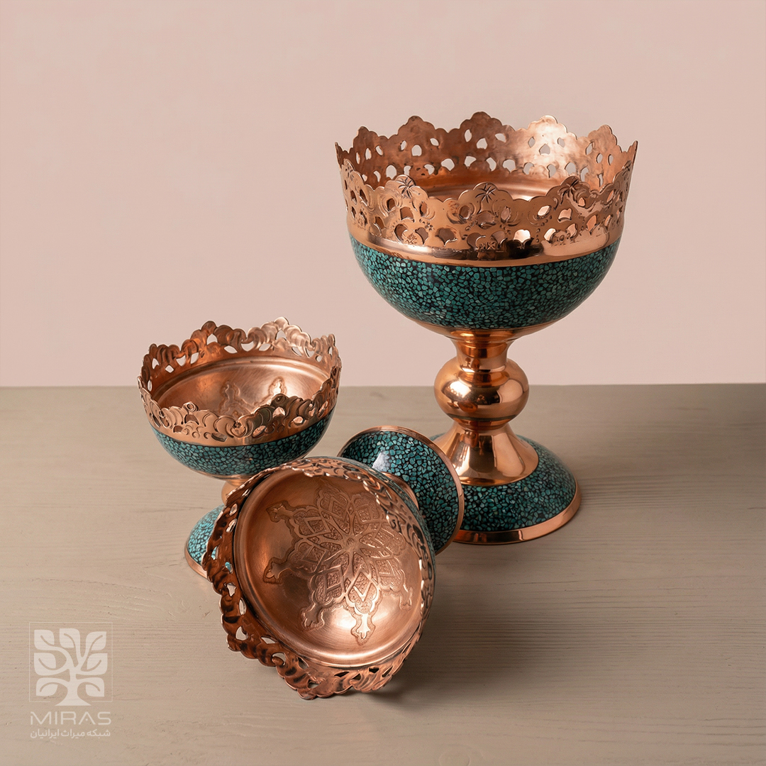 شکلات خوری فیروزه بسیار زیبا سایز 28 با ساخت دقیق و متریال مرغوب، گزینهای شایسته برای پذیرایی رسمی و دکوراسیون اصیل ایرانی.