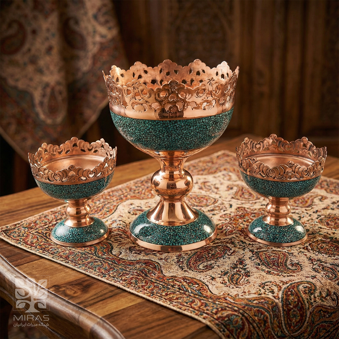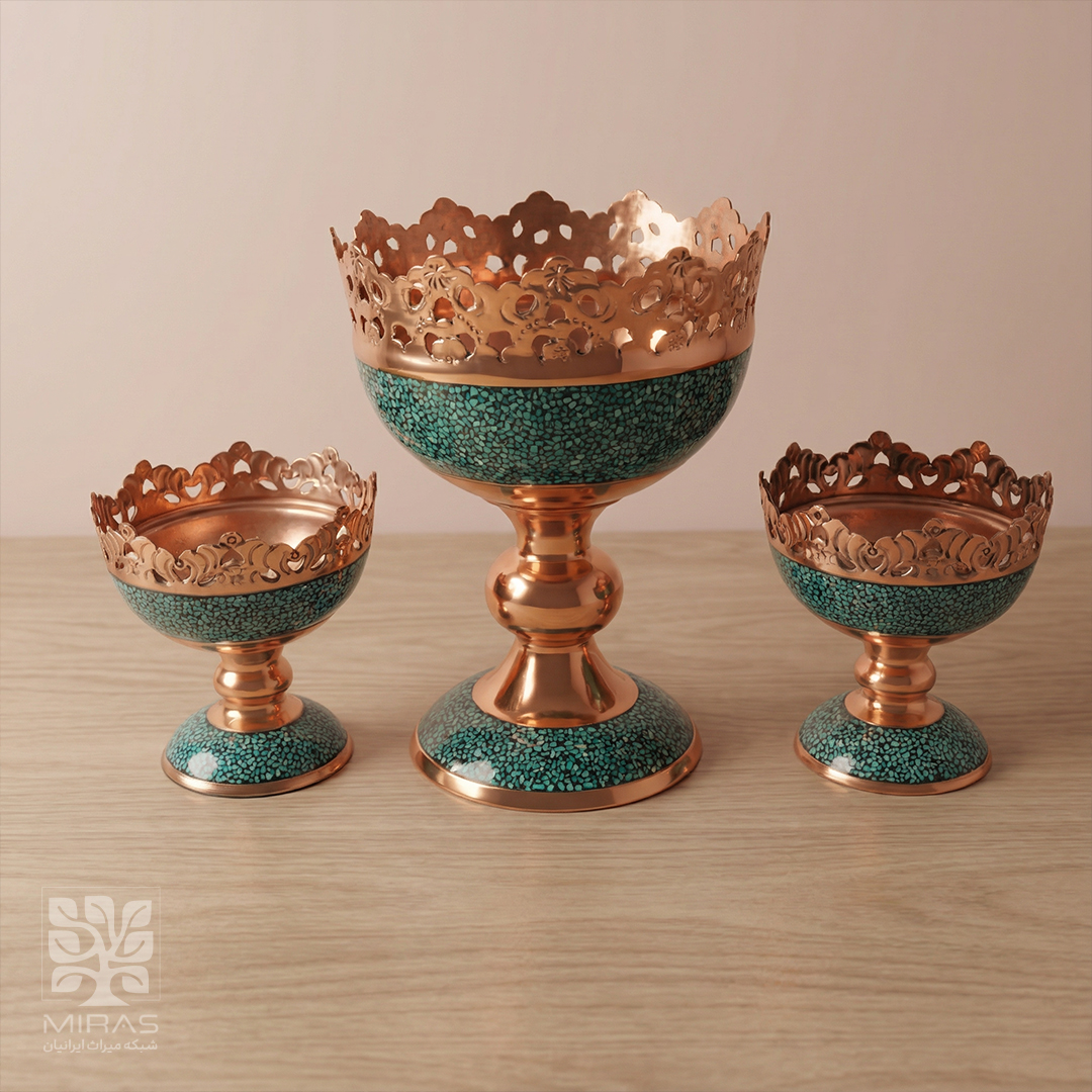 سرویس ۳ تکه آجیل خوری فیروزه شامل دو عدد سایز 13 و یک عدد 20 با ساخت مرغوب و طراحی هماهنگ، انتخابی ایدهآل برای پذیرایی رسمی و دکوراسیون لوکس.