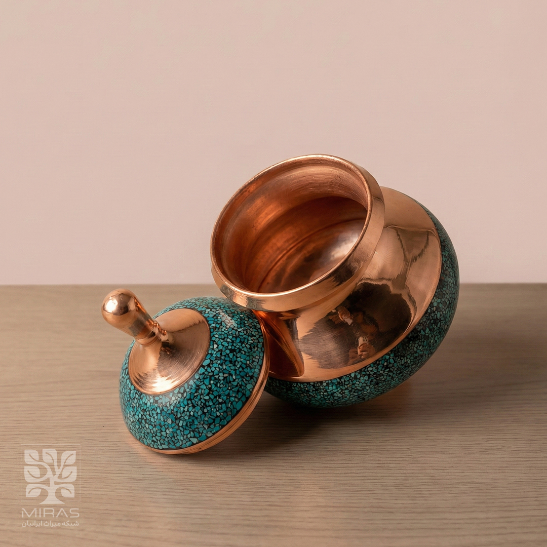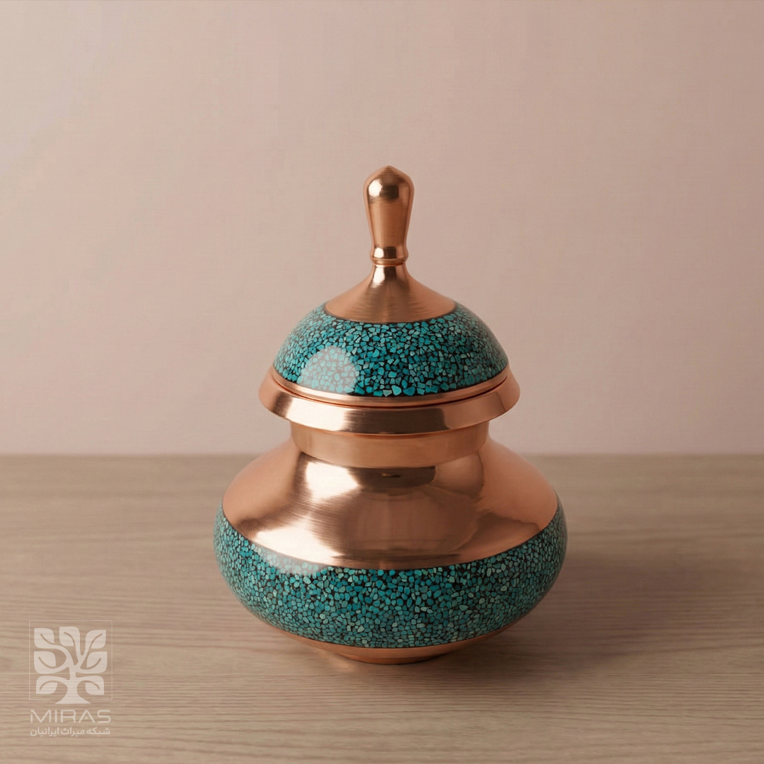 قندان فیروزه کاری بسیار زیبا سفینهای سایز 1 با فرم متفاوت و متریال مرغوب، انتخابی شیک برای پذیرایی رسمی و دکوراسیون فاخر.
